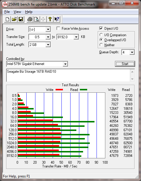 We also forced ATTO to Randomise it's test data, achieving half typical throughput of the Gigabit network connection